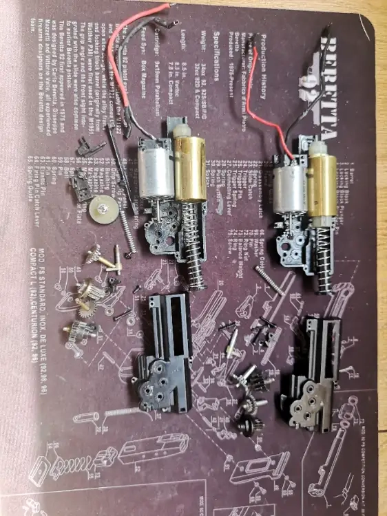 Je vends ces 2 gearbox pour mp7 ou vz61 AEP. Elles semblent complètes mais je n'y connais pas grand chose dans ces gearboxs.