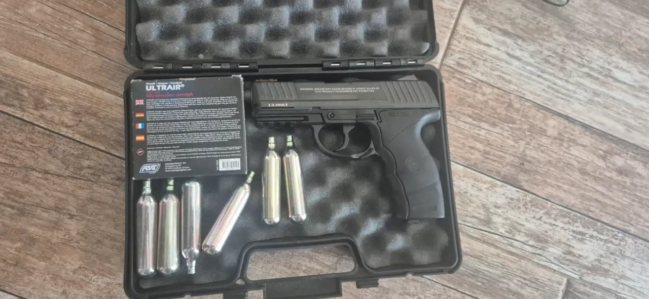 Je mets en vente mon pistolet airsoft CZ P-09 de chez ASG, version CO₂, avec sa mallette de transport d'origine.