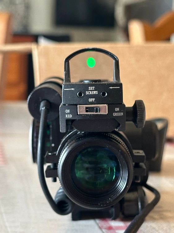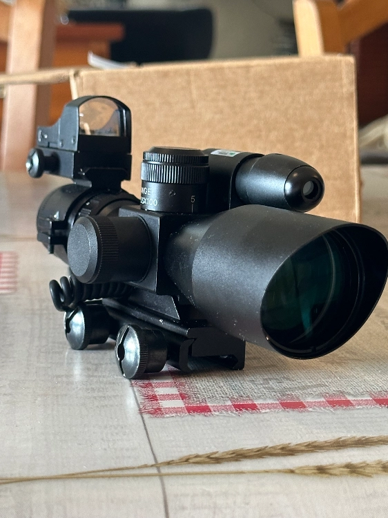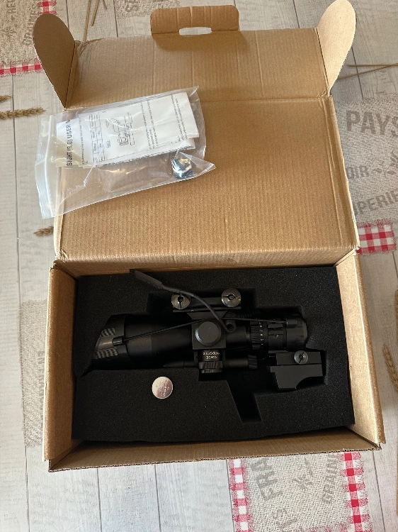 Je me sépare de tout mon matériel et cette lunette neuve n’ayant fait qu’une seule partie, un x10 avec réticule en croix, plus un red dot et un laser amovible. Ce monte sur rail picadilly.
