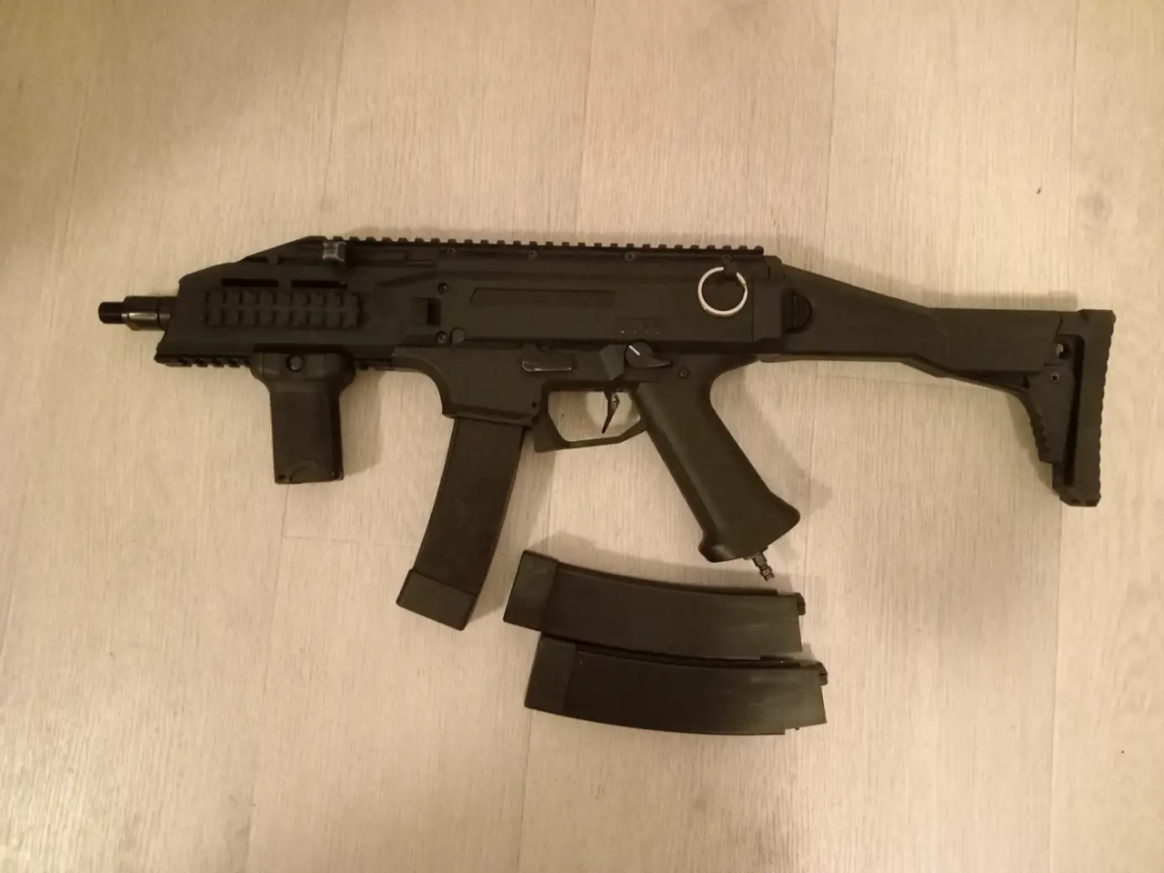 Il est vendu avec 3 chargeurs 75 bbs et un adaptateur pour silencieux ou traceur,