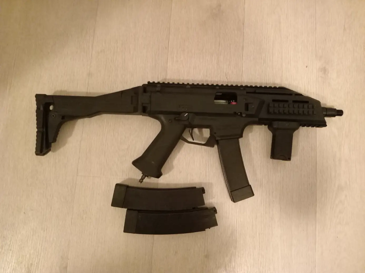 Je vend un scorpion evo noir en hpa avec un wolverine spartan inferno, raccord us, bloc up max, détente max style A noir, canon 6.05 208mm en lambda five et un joint super macaron 60,