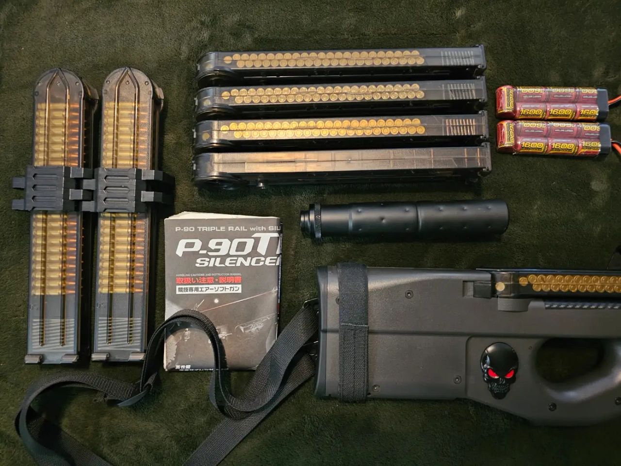 Je met en vente une réplique de P90 de la marque Tokyo Marui équipée d'un kit de rail Nitro VO.