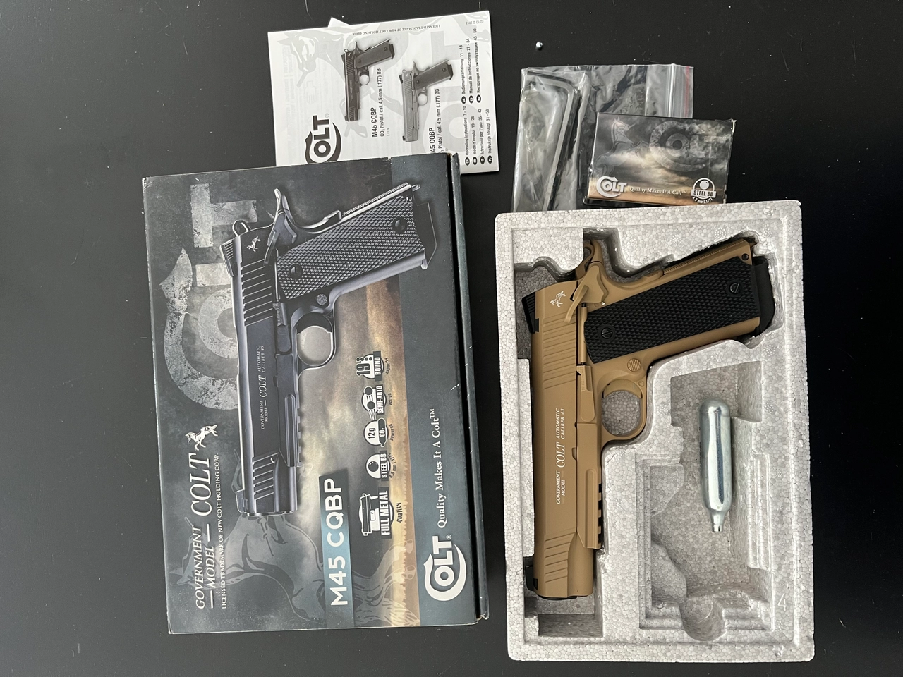 Pistolet à billes CO₂ Colt M45 CQBP, calibre 4,5 mm (.177). Réplique réaliste, idéal tir de loisir.
