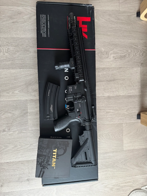 Hk416 Vfc full métal, la réplique est en parfait état. Vendu avec sa boîte est chargeur d’origine. La réplique a été upgrader, seulement quelques parties.