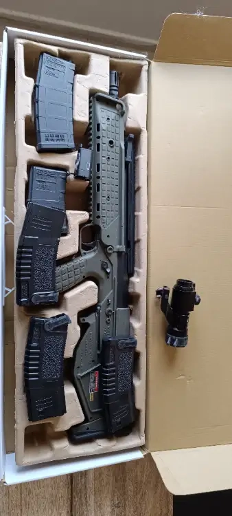 equipé d'une lampe, lunette Acog, batterie lipo 11.1 25c, 1 mag low cap, 3 mag hight, carton d'origine et bonne état.