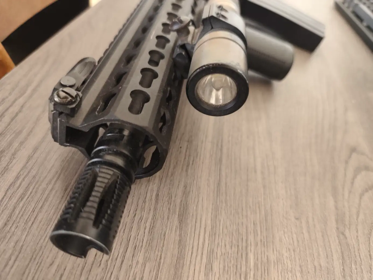 Avec ses accessoires lampe torche et poignée.