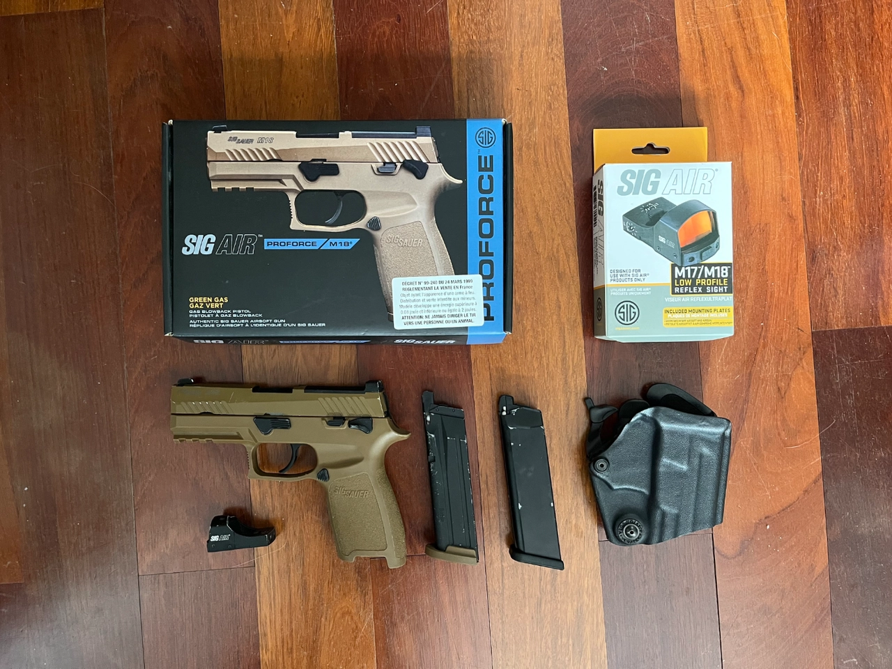 - Un holster Vega VKS807, normalement conçu pour Sigpro 2022 mais a été thermo formé pour cette réplique (90€)