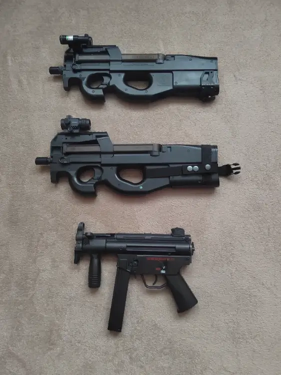 P90 Custom Cybergun Noir AEG + 5 chargeurs CYMA low-cap 70 BBS + viseur point rouge et laser vert