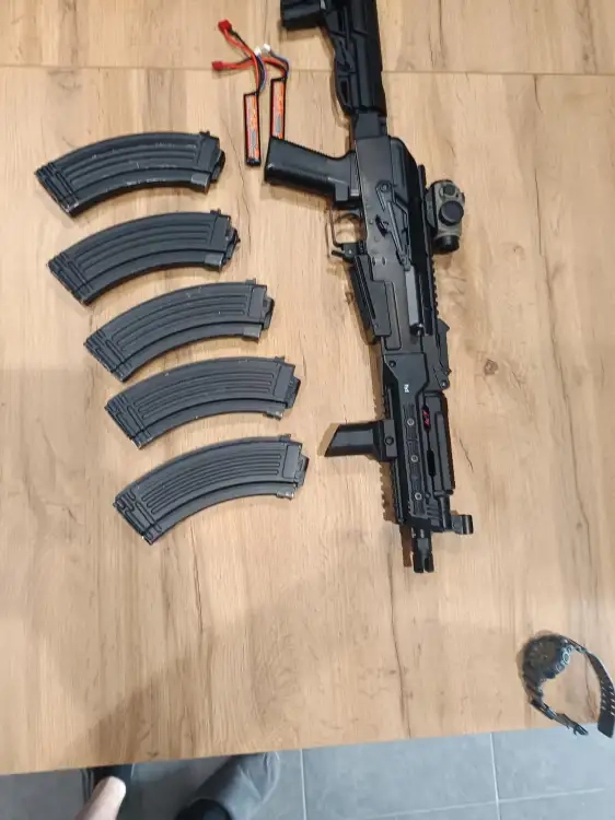 Quelques rayures sont présentes sur les chargeurs, coté gauche de l'ak, parfaitement fonctionnelle, tire à merveille à la 0.28 pour 0.9joules