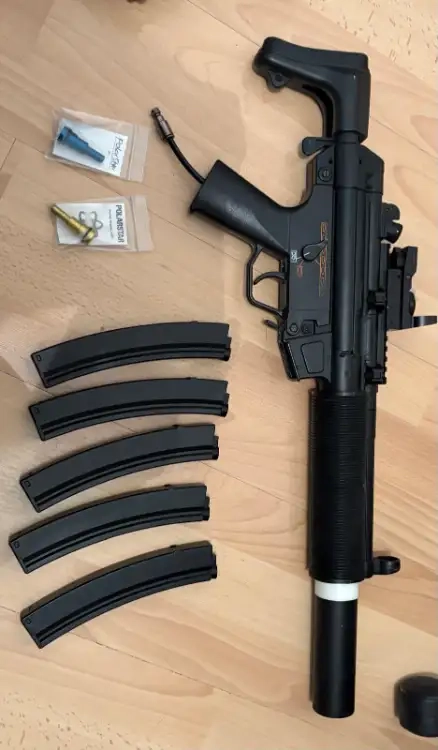 je fournis pour la vente le rail et le viseur ainsi que 5 chargeurs midcap