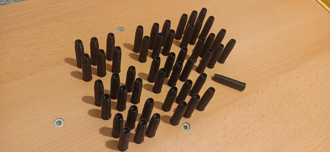Douilles plastique pour revolver de calibre 6mm ;