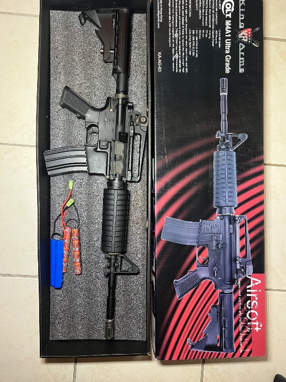 M4 A1 AEG KING ARMS (Version Polymère, full d'origine, fourni avec une batterie 2 double stick NiMh 9,6V 130 euros
