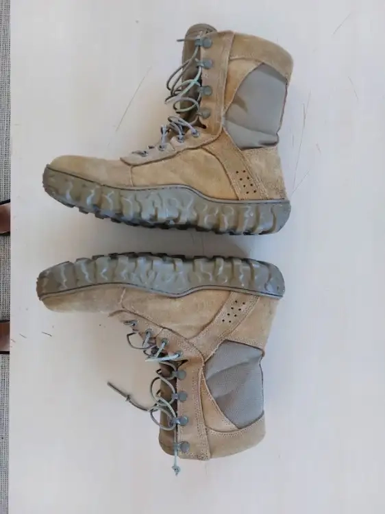 Bottes Rocky S2V de l'armée américaine. Ce modèle est conçu pour le printemps, l'été et l'automne. En excellent état. Embout de sécurité en acier. Semelle quasiment neuve. Portées un seul mois (je les vends car elles sont trop petites). Pointure d'origine 10,5 (US), équivalent à 44-44,5 (EU). Code : RKC053