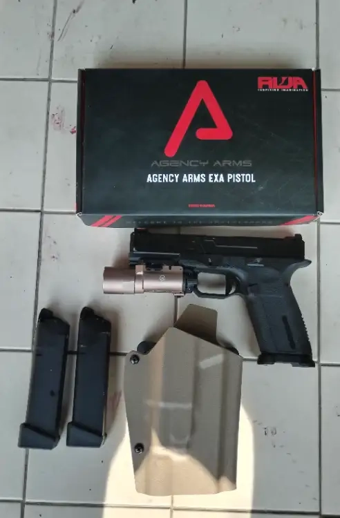 Rwa exa arms: 5 ou 6 parties à son actif. 2 chargeurs, lampe x300, holster glock avec x300. Le tout dans sa boîte. Fonctionne très bien.