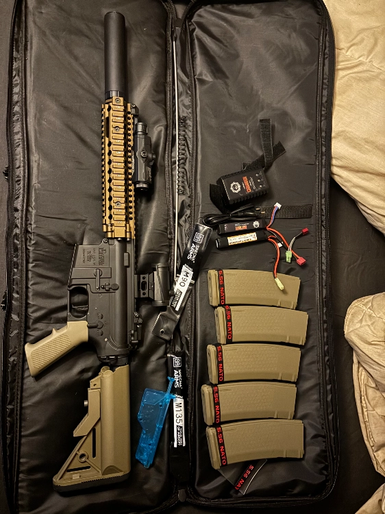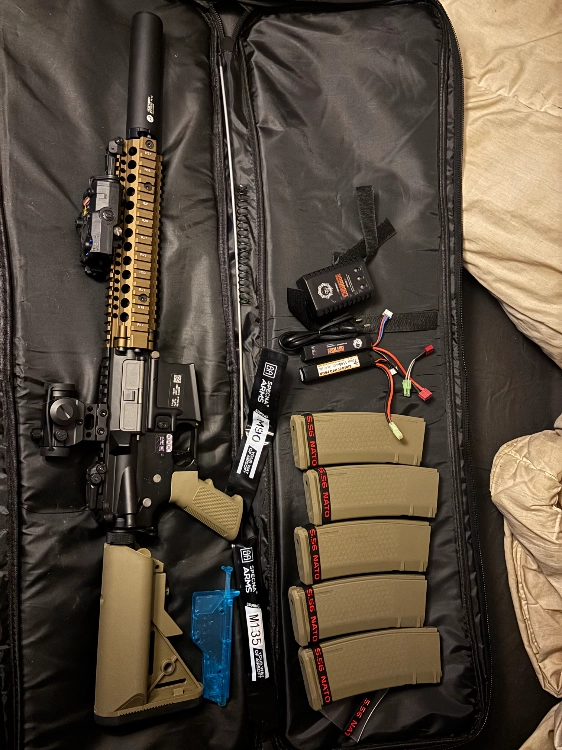 À vendre mk18 avec 5 chargeur un viseur un an peq un traceur et 2 batterie en très bon état acheté en mars 2025