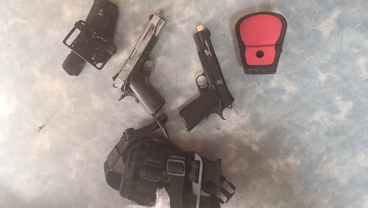 Holster gaucher rétention actifs avec passant ceinture et plaque de cuisse
