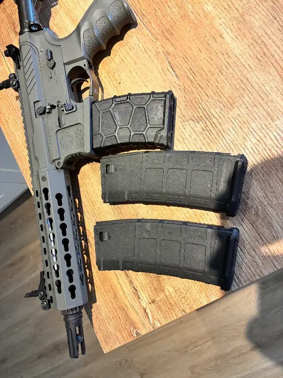 Je la vend avec 3 chargeurs middle cap sans molette de remontage de billes, offrant un parfait silence et non l'effet maracas des chargeurs d'origines.