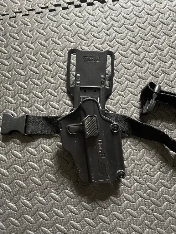 Holster universel amomax avec plaque de cuisse en bon état mais présente quelques rayures