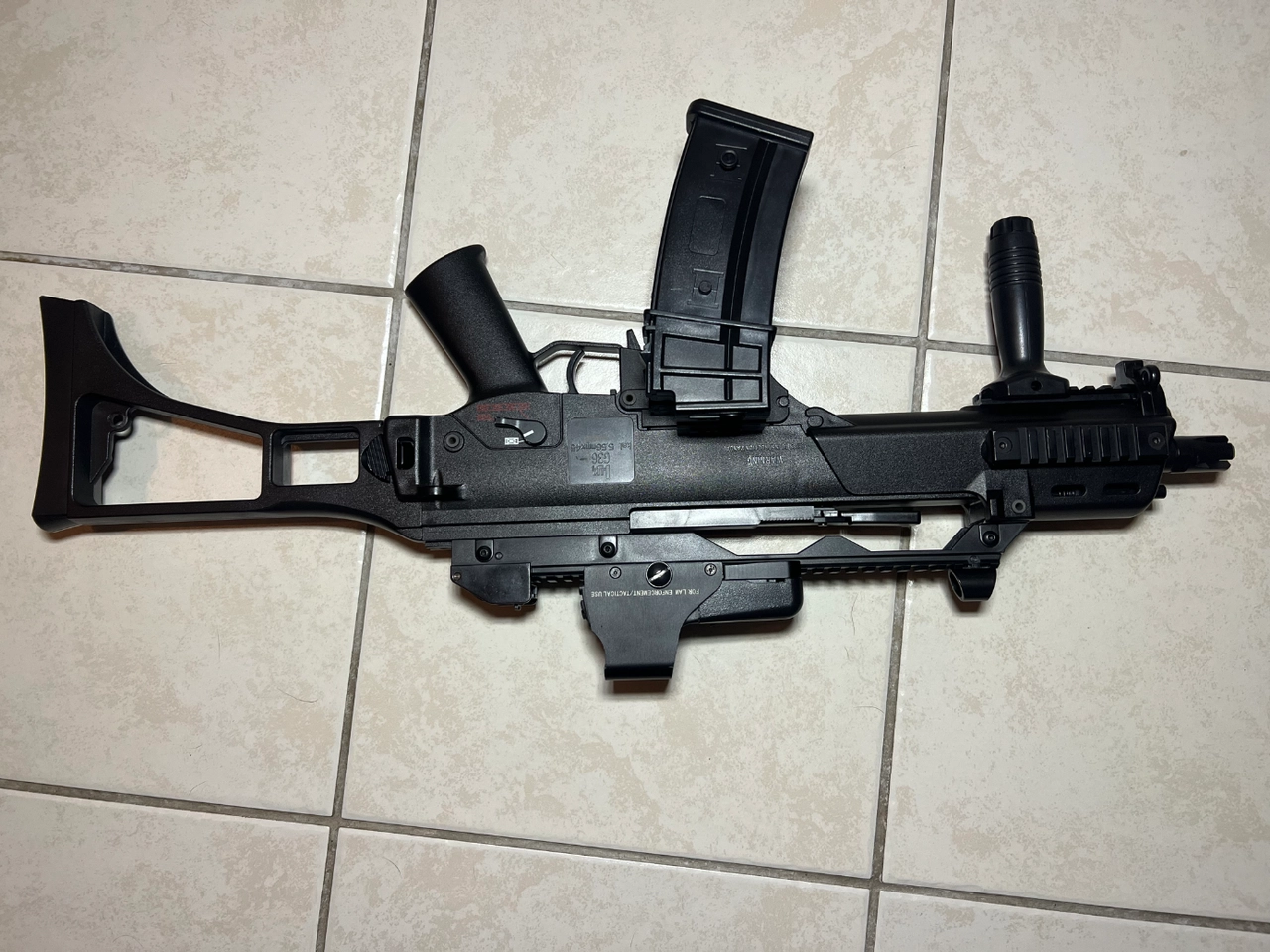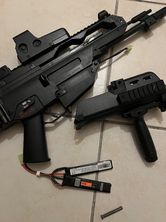 G36C AEG sous licence UMAREX (full d'origine, fourni avec deux chargeurs supplémentaires mid cap et un viseur holo + batterie