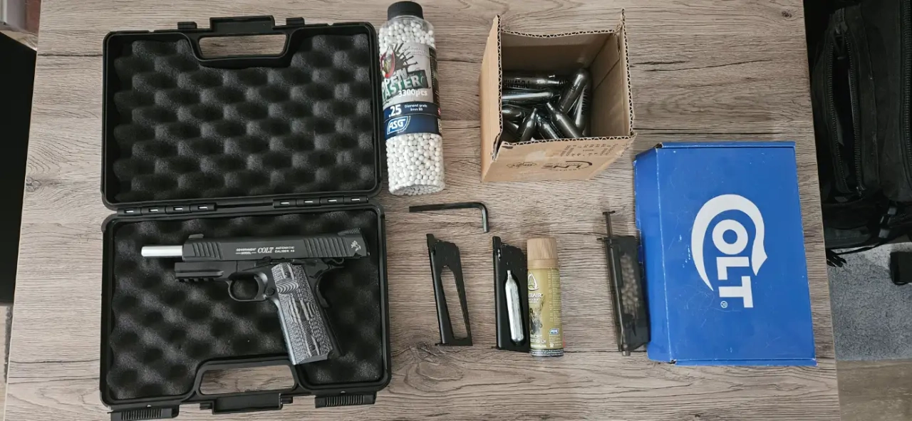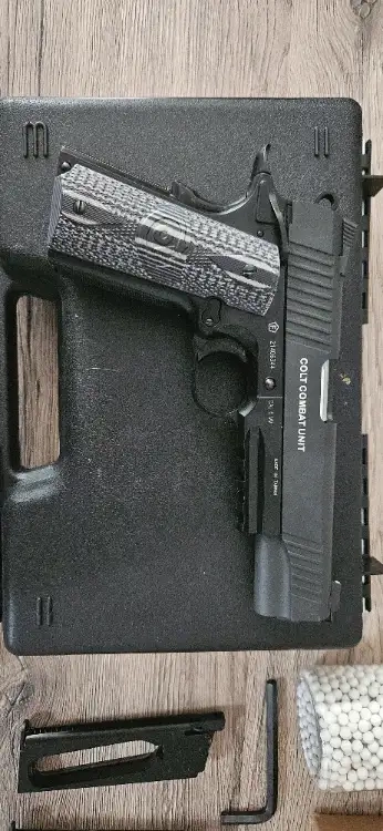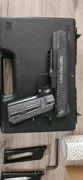 Vends réplique airsoft à gaz d'un colt 1911 avec sa crosse boisée. Il envoie du steack
