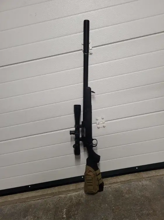 Le beige crosse type m40, canon précision 6.03 et joint violet nineball, kit cylindre aac. Lunette et bipied vendu avec