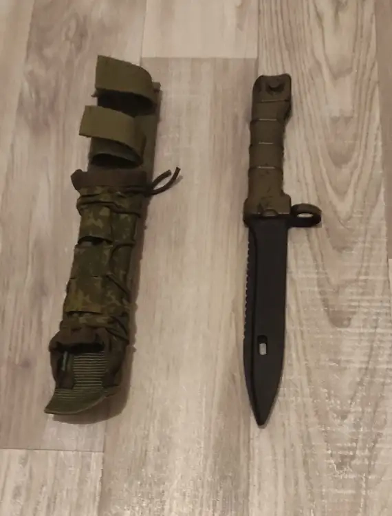 Je vends une bayonette airsoft et une poche russe Mini Molle en Emr Digital flora.