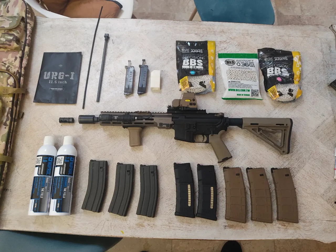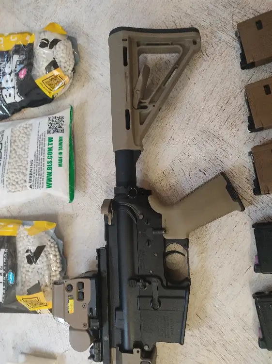 M4 URGI Tokyo marui gbbr avec 8 chargeurs comme sur la photo (dont 3 marui, et 3 Gun modify)