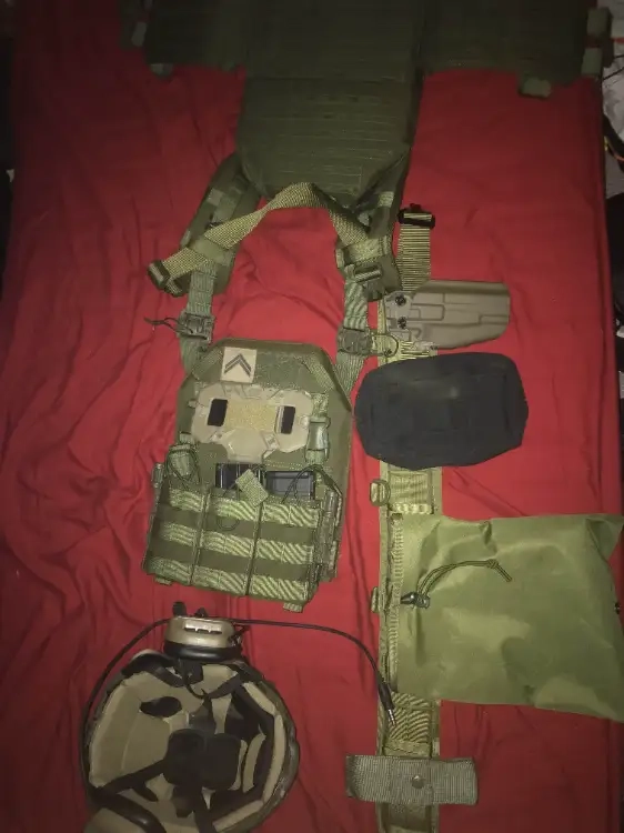 Bonjours je vend ma tenue complète de A à Z du casque au chaussure taille S pour les treillis et chaussures 41 je vais mettre deux photo même équipement juste le treillis change tout et à vendre appart la m4 déjà vendu pour plus dinfo hésitez pas à m’envoyer un sms