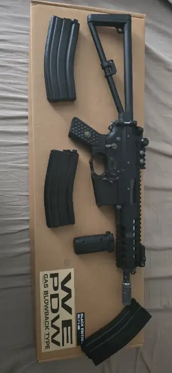 Bonjour je mes en vends ma réplique KAC PDW GBBR en 10" de chez WE vendu avec 2 chargeur supplémentaire et une poignée court je vends le tout pour 280€ .
