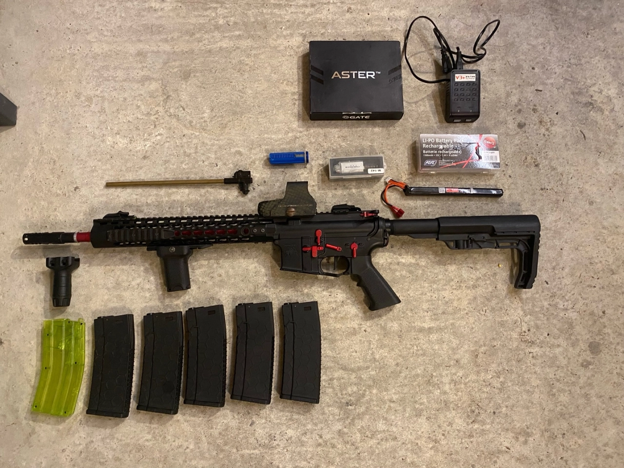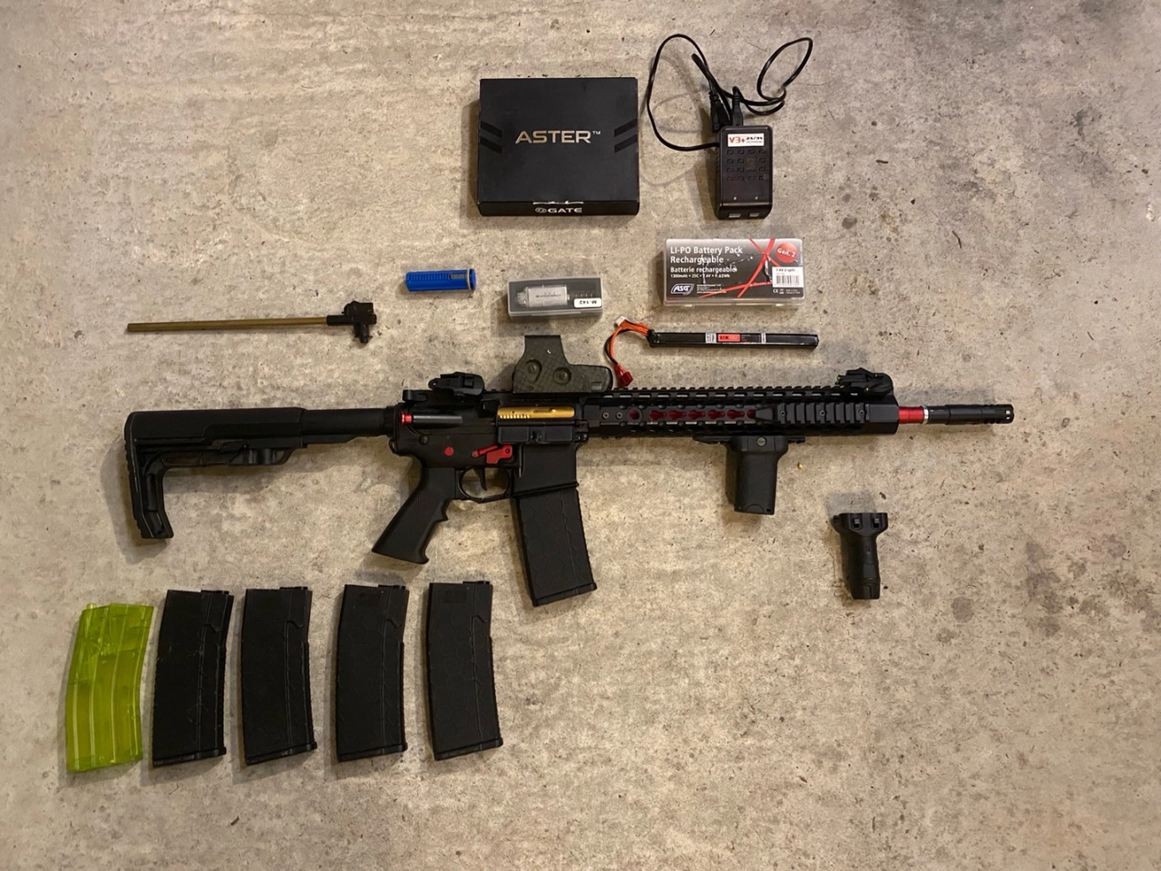 Réplique préparée TacticShop, upgrades quasi neuves (Gate ASTER, canon précision, piston renforcé, moteur M142).