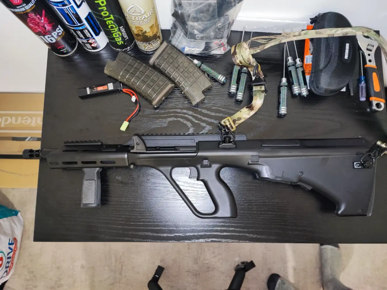 Réplique Aug qui sort de l'ordinaire pensé pour le jeu, 3,5 kilos très réaliste une fois tous équipé avec fonction de déverrouillage du canon pour accédez aux hop up