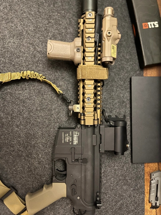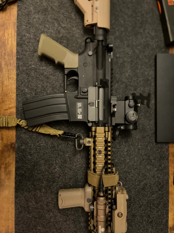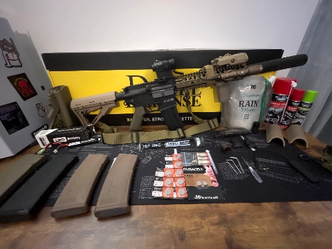 Airsoft quasiment neuf, jamais servi en partie totalement prêt pour, vendu avec tout ce qu’il y a sur la photo tout les accessoires sont fonctionnels, piles pleines fournis 5 chargeurs 1 réel cap 4 grand cap