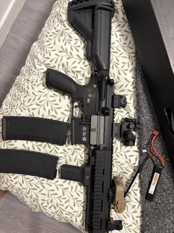Bonjour je vends ma specna prime Hk416 neuve une sortie à ce jour vendu avec sa boîte + batterie lipo 7.4 et deux chargeur plus ressort d’origine et ressort M90 vendu sans viseur et sans poignée valeur en magasin 450€ remise en main propre sur Marseille je répond au 0751656129 négociable dans le raisonnable