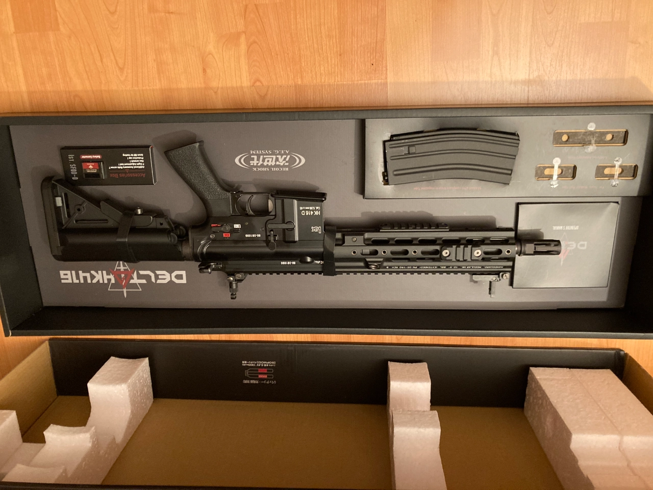 Vend un HK416D Delta Custom Tokyo Marui neuf. Je ne fais plus d’airsoft depuis longtemps mais je collectionne les répliques. Je vends celle-ci car j’ai acheté la même en couleur tan.