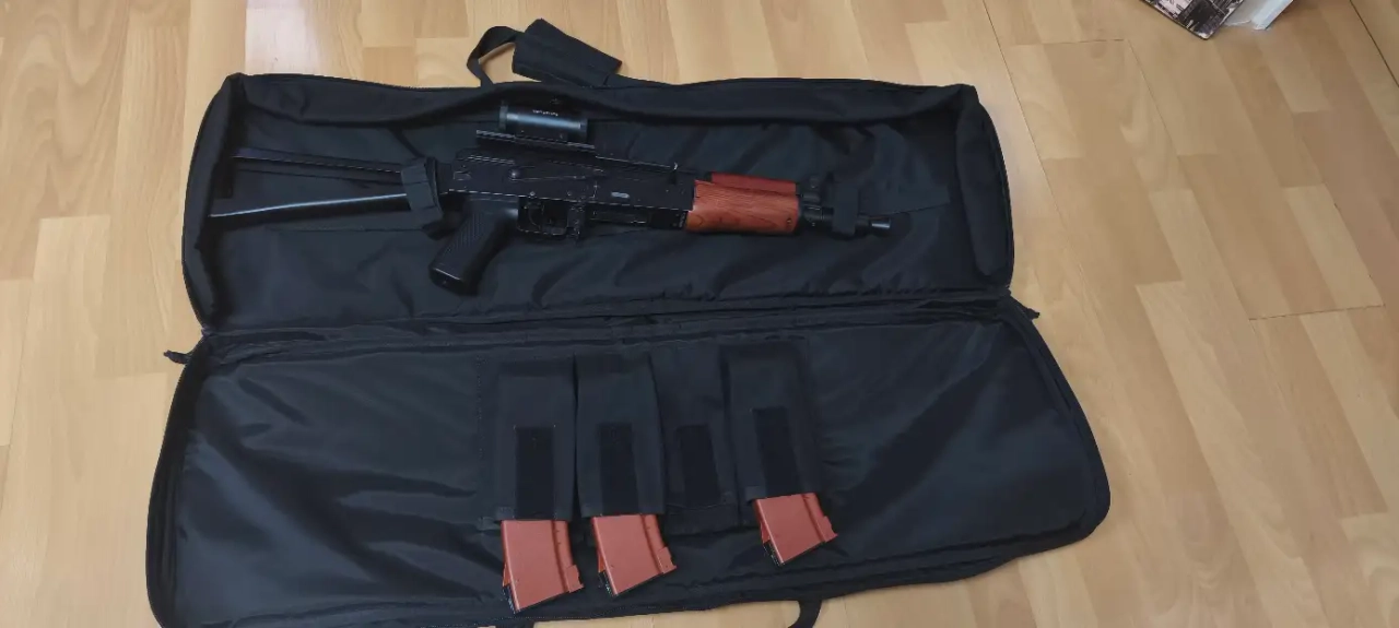 Je la vend avec le viseur point rouge, les 3 chargeurs high cap, le rail et le sac