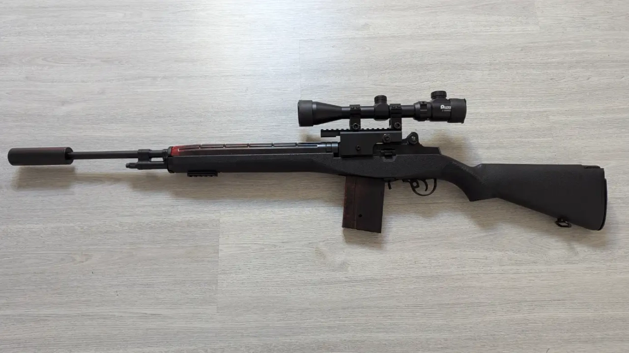 Un rail picatiny installé pour pouvoir y mettre un bipied.