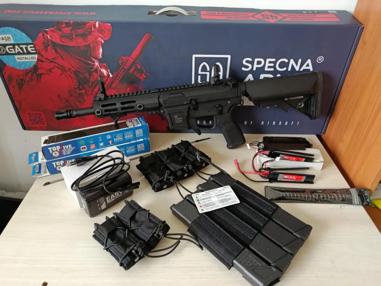 remplacement de la crosse d'origine par une crosse crane specna arms, pour y loger plus facilement la batterie