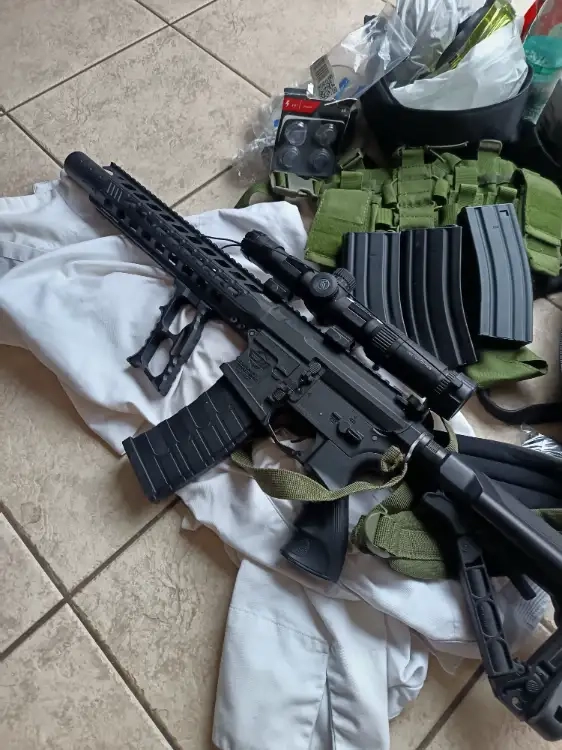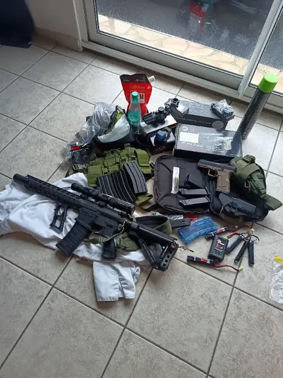 red dot, véritables lunettes militaires et tout ce qu'on voit sur la photo.