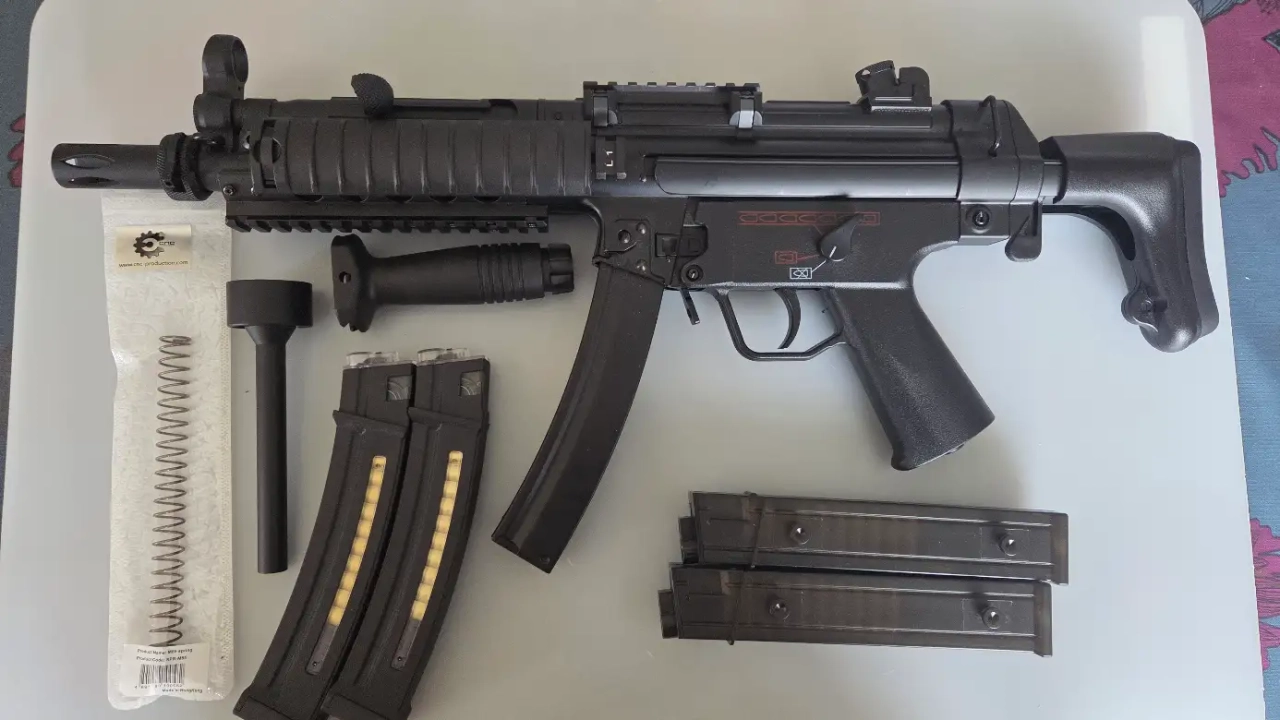 Remise en vente aujourd'hui de mon dernier aeg. Raccrochant définitivement les répliques longues, je souhaite me séparer de mon MP5 cyma donc avec corps en métal et gearbox Blue.