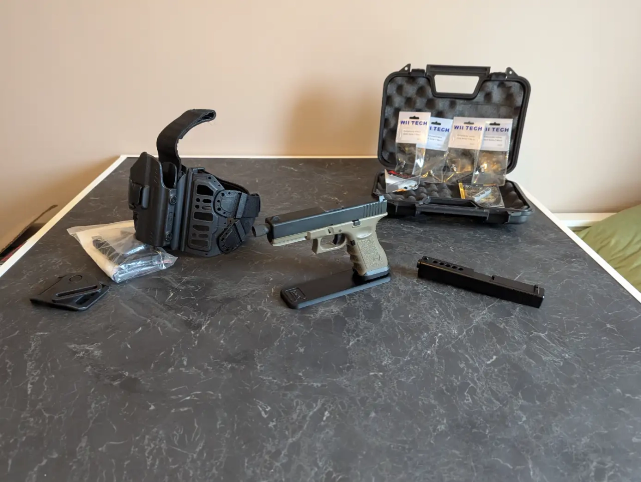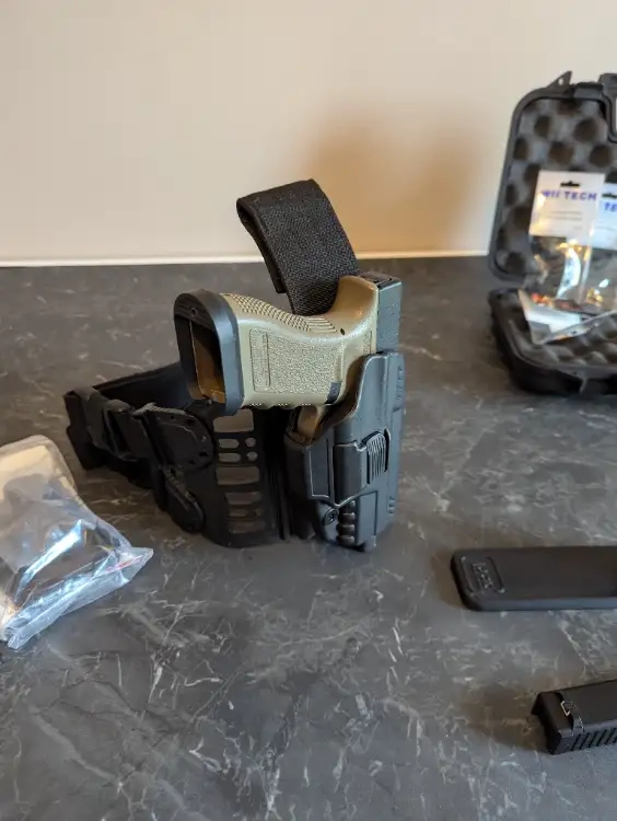 À vendre : Réplique Airsoft GBB TOKYO MARUI G17 gen3 full GUARDER et canon PDI, vendue avec deux chargeurs (à vérifier). Culasse + guide en métal + version ABS disponible. Je vends avec le holster de cuisse / ceinture de la marque GK (matériel professionnel) + mallette de transport.