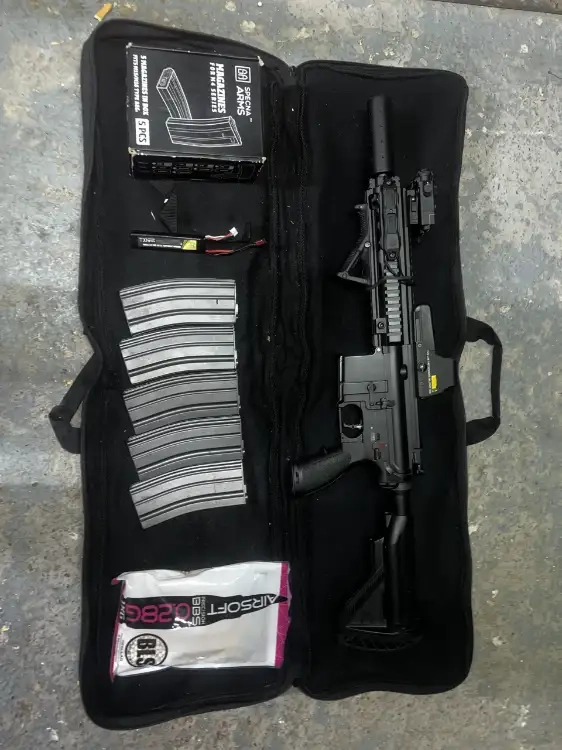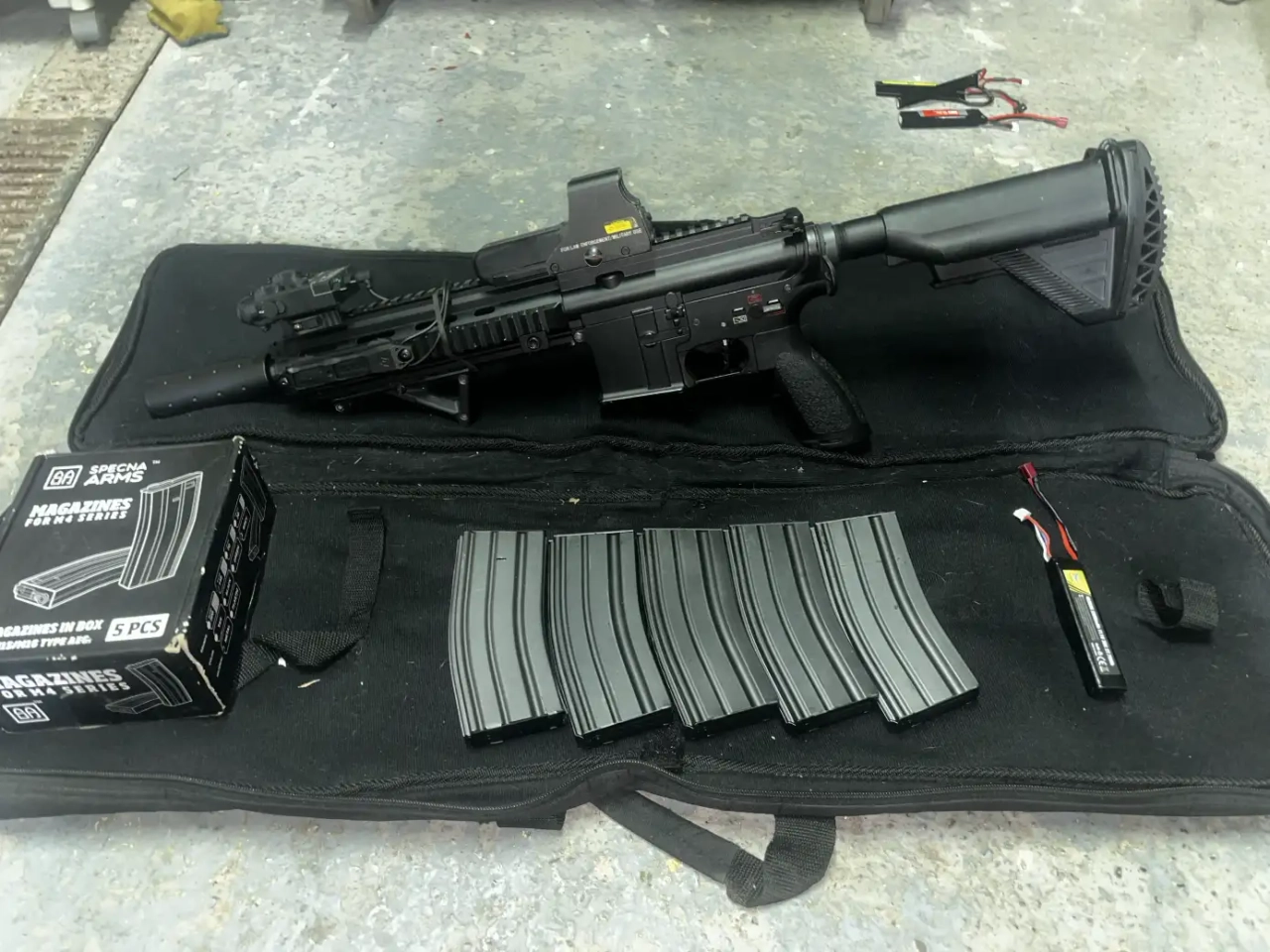 Pack HK416 noir + sacoche + 5 chargeurs mid-cap + batterie + billes**