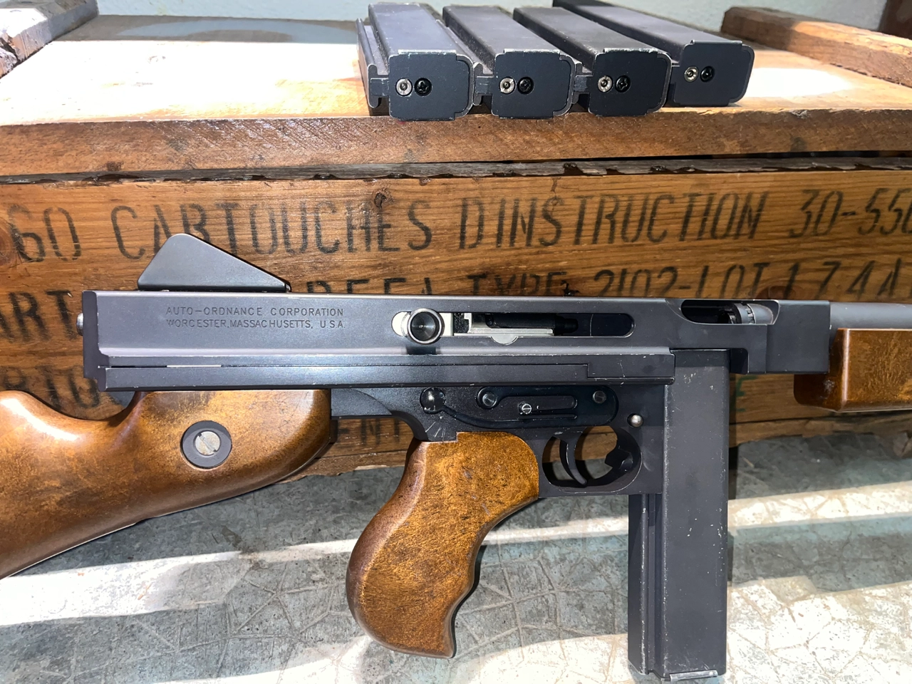 Bonjour je vends ma Thompson de chez WE presque neuve je la vends avec 5 chargeurs 4 court et un long .