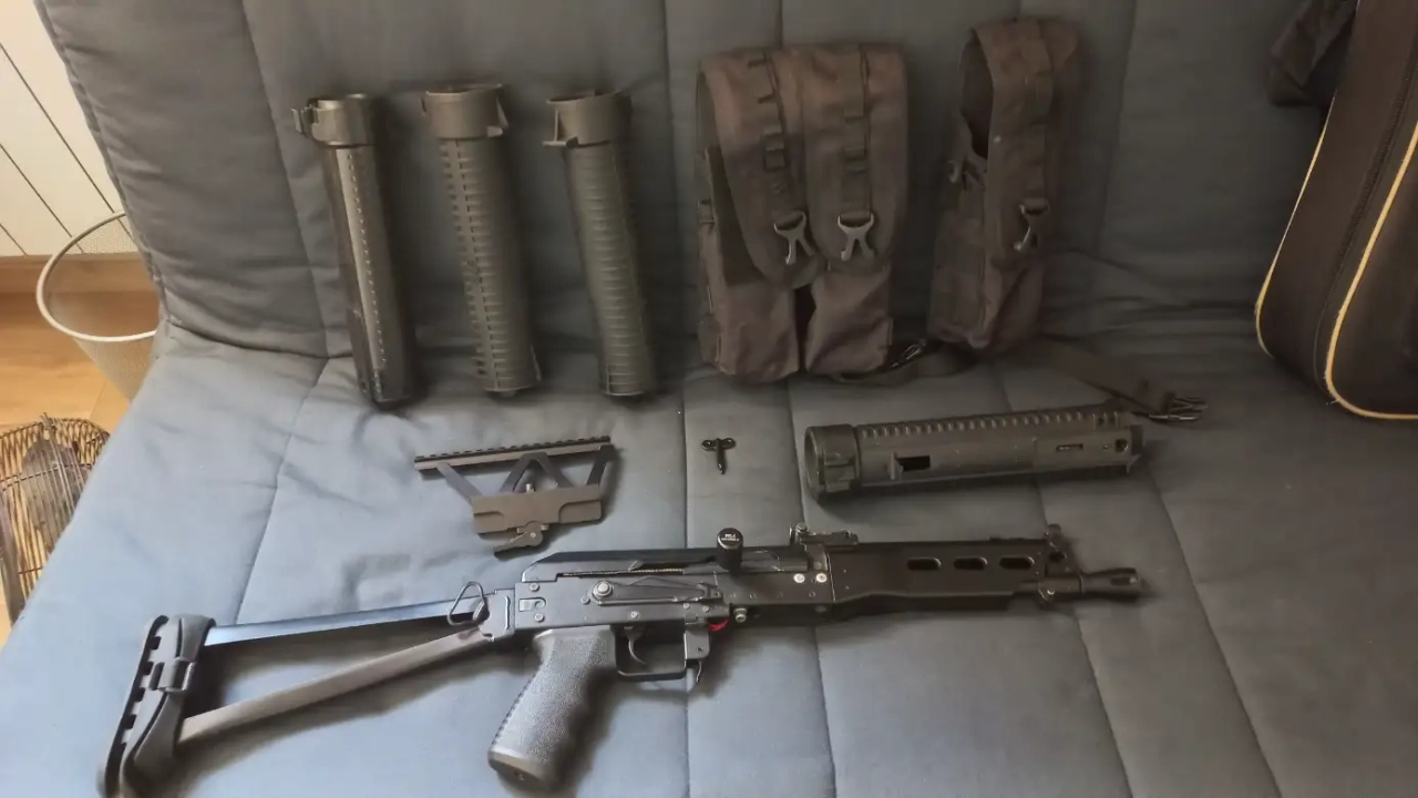 Je revends ce chouette Bizon Cyma avec quelques modifications cosmétiques (poignée, crosse et levier d'armement). Il a été downgradé pour être utilisable sur un terrain officile (1 joule).