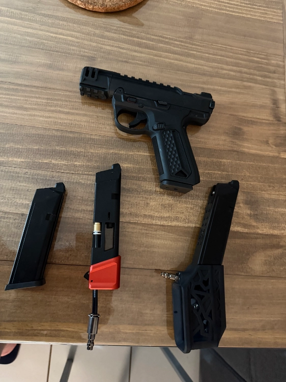 bonjour , je vend un aap-01 c cause changement de projet . en bon état , canon crazy jet , joint hop up quantum tête de piston tti. tout le reste d’origine . + 1 chargeur gaz , possibilité de vendre en plus deux adaptateur hpa en us . envoie ok paypal . visible sur angoulême. cordialement