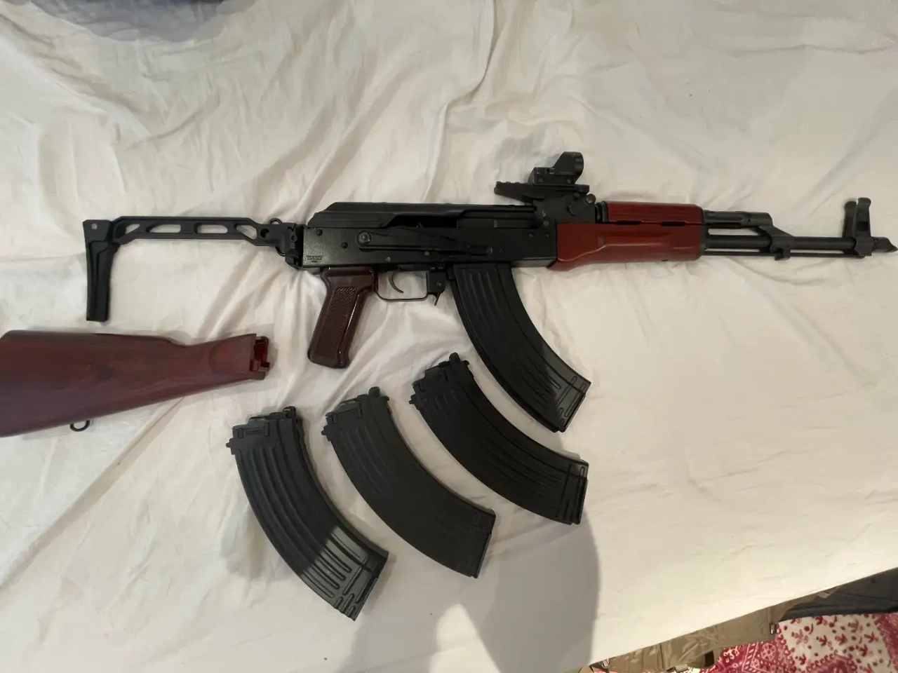 Vend AKM marui avec 3 chargeurs Marui supplémentaires qui a servi seulement une partie avec différents uprages et accessoires