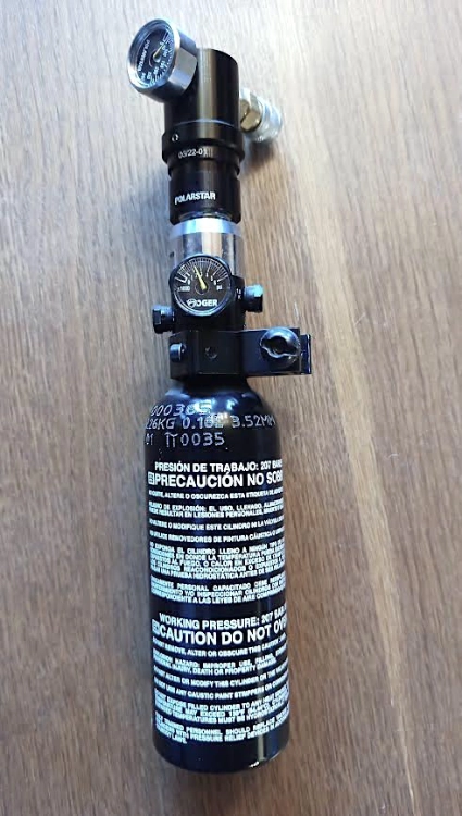 petite bouteille HPA 0,16 L avec micro régulateur polarstar MR.