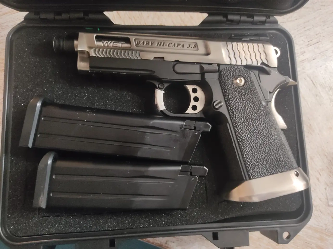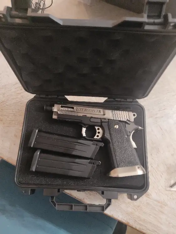 Superbe réplique WE , un petit hi-capa qui deboite! Il fait un super bruit , maniable , je le porte en ventral avec un holster rigide sur mon gilet tactique, c'est un régale. Livré dans sa boîte étanche avec 2 chargeurs