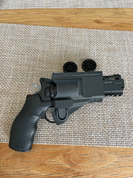 Vends revolver h8r, puissance 1 joule avec 3 barillets de 10 billes chacun, très fun en cqb