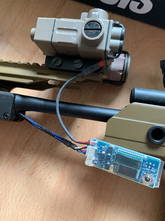 Réplique équipée avec une eotech + protection, mire mbus originale, batterie, dbal a2 switch, poignée et silencieux.