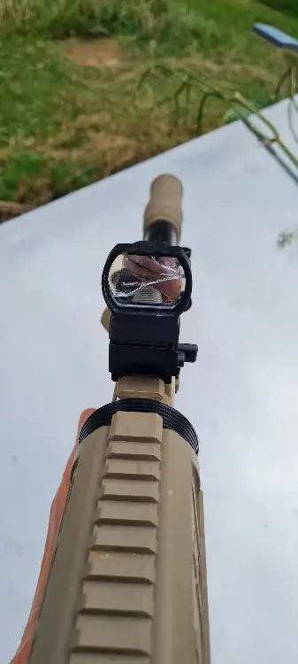 - 2 Rails 21 mm de type picatinny. Un rail sur le corp et un sur le garde main avec visée avant rabattable pour ne faire qu'un avec le rail permettant l'installation d'un organe de visé sans aucune gêne